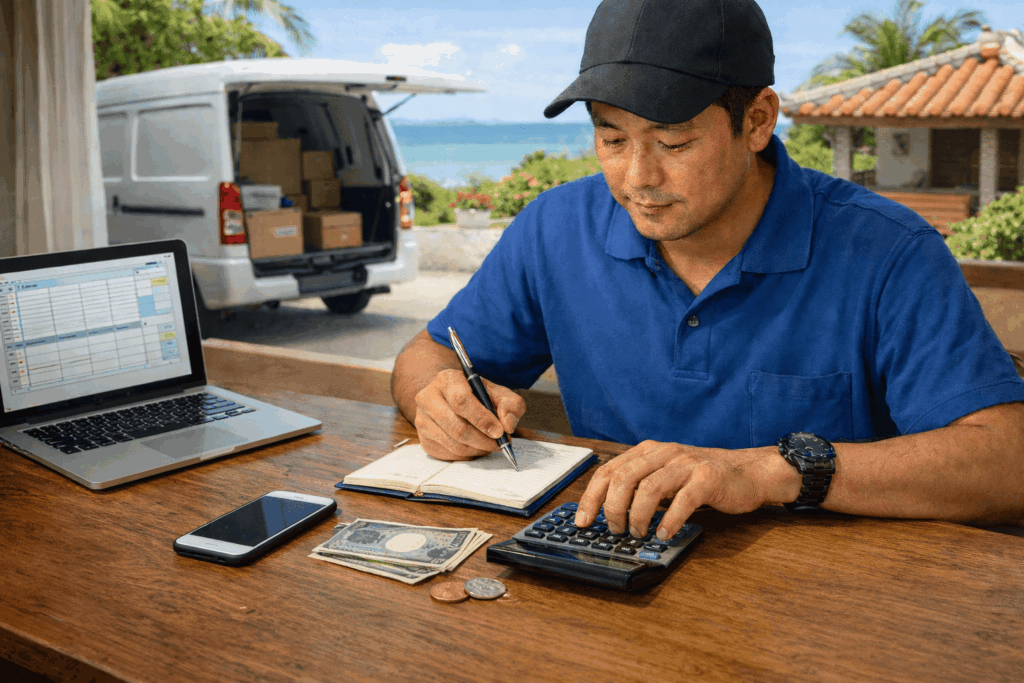 ここまで見てきたように、沖縄の委託ドライバーの収入は、軽貨物・宅配・フードデリバリーでそれぞれ特徴があり、売上と手取りには大きな差があります。求人でよく見る「月収〇〇万円」という数字はあくまで売上であって、そこからガソリン代や車両維持費、税金や国民健康保険・国民年金などを差し引いたあとに残るのが、あなたの本当の手取りです。