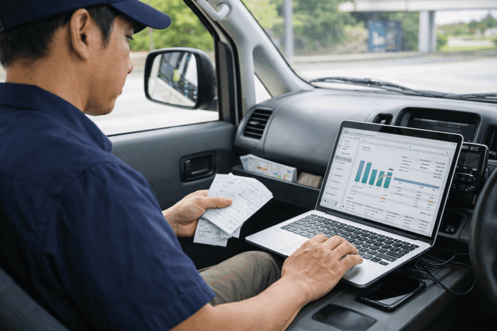 しかも多くの軽貨物ドライバーは個人事業主なので、軽貨物ドライバーのガソリン代の節約だけでなく、確定申告や青色申告、減価償却といった「お金と税金まわり」の管理も全部自分でやることになります。売上はそこそこあるのに、「思ったより手取りが少ない」「軽貨物ドライバーの経費平均より使い過ぎてる気がする」みたいなモヤモヤを抱えがちなんですよね。