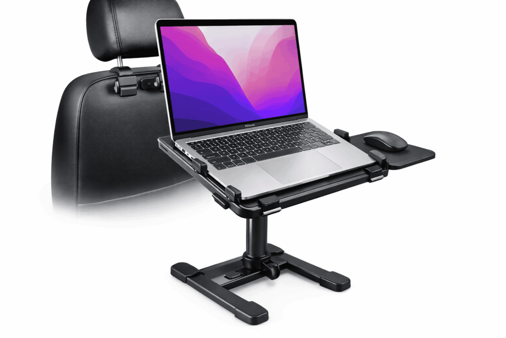 私は常にコンパクトさを求めているので、整理ボックスにピッタリ入り、ハンドルにかけるだけのスタンドは、まさに理想通りの商品でした。使い心地も最高で、腕をグッと押しても全然大丈夫そうで、1年使ってもピンピンしているので、丈夫さも問題ないと思います。質感としては、アルミ素材?の良いPCにラメ入りのコーティングをしたような感じです。重さもずっしりしており、今後も長く使っていけそうな商品なので、車でPC作業を良くする方にはおすすめの商品ですね。